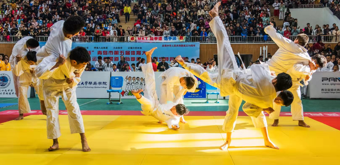 体育大会是青岛市四年一届的大型综合性体育赛会,柔道比赛有17支队伍近300名选手参赛;跆拳道比赛有53支队伍1000余名选手参赛;摔跤比赛有150余名选手参赛,参赛人数创新高。