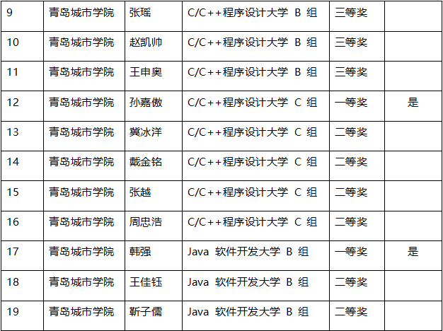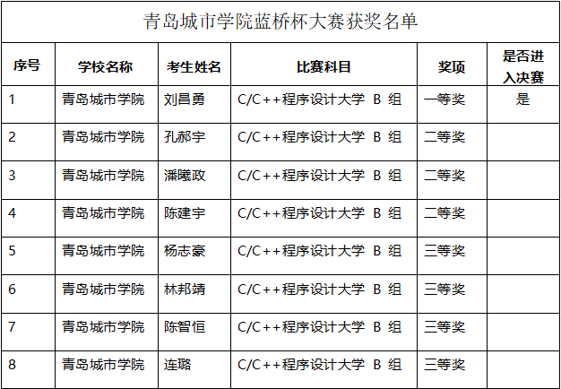 其中刘昌勇、孙嘉傲、韩强、杜金超获得软件类省赛一等奖,并以优异的成绩入围第十三届蓝桥杯全国总决赛。具体获奖名单如下:
