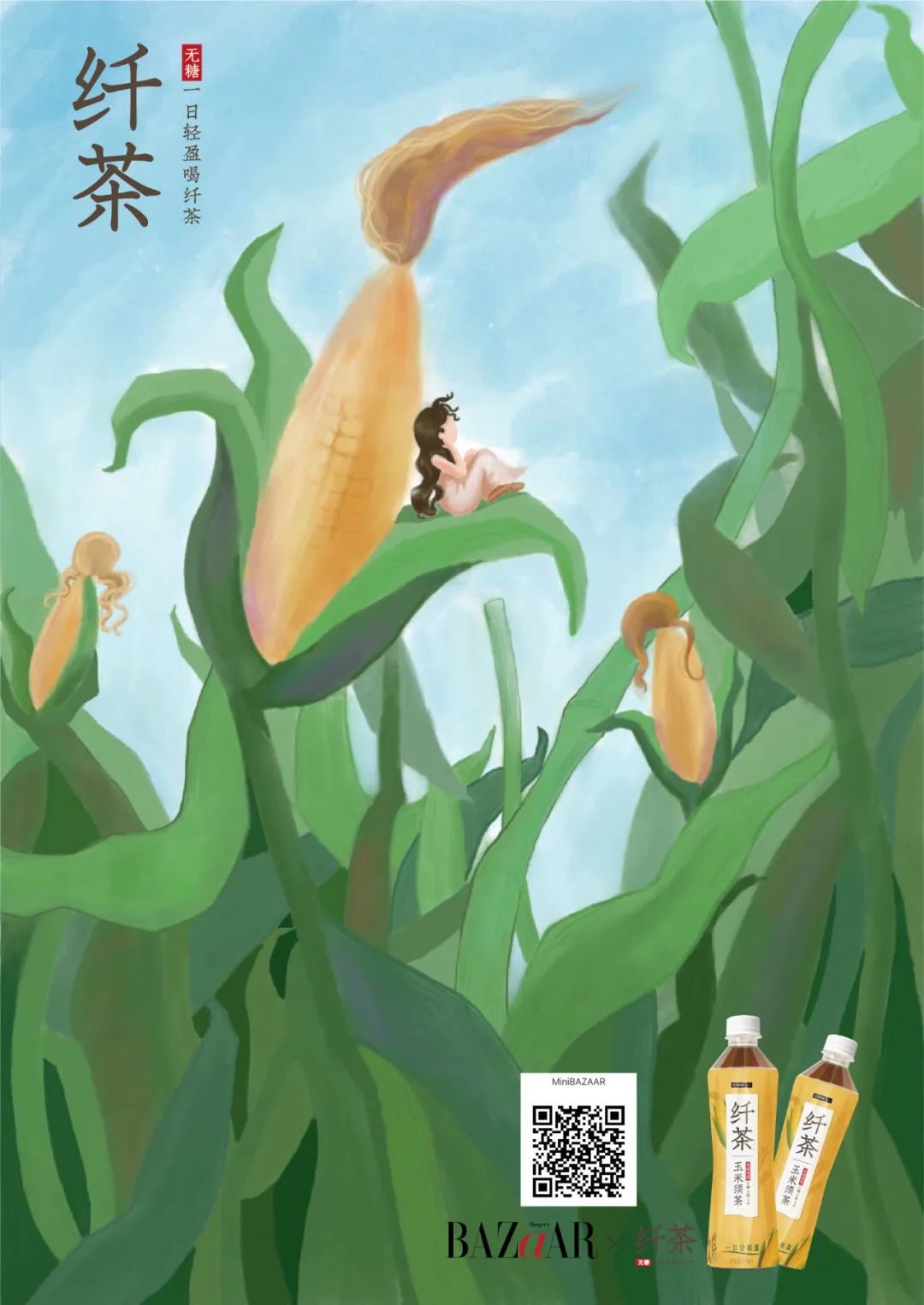 设计说明:本套作品以芭莎女孩为主体,以纤茶的材料产地为环境,展开一系列“芭莎女孩寻宝记”的故事,画面颜色清新、氛围活泼,贴合品牌调性。