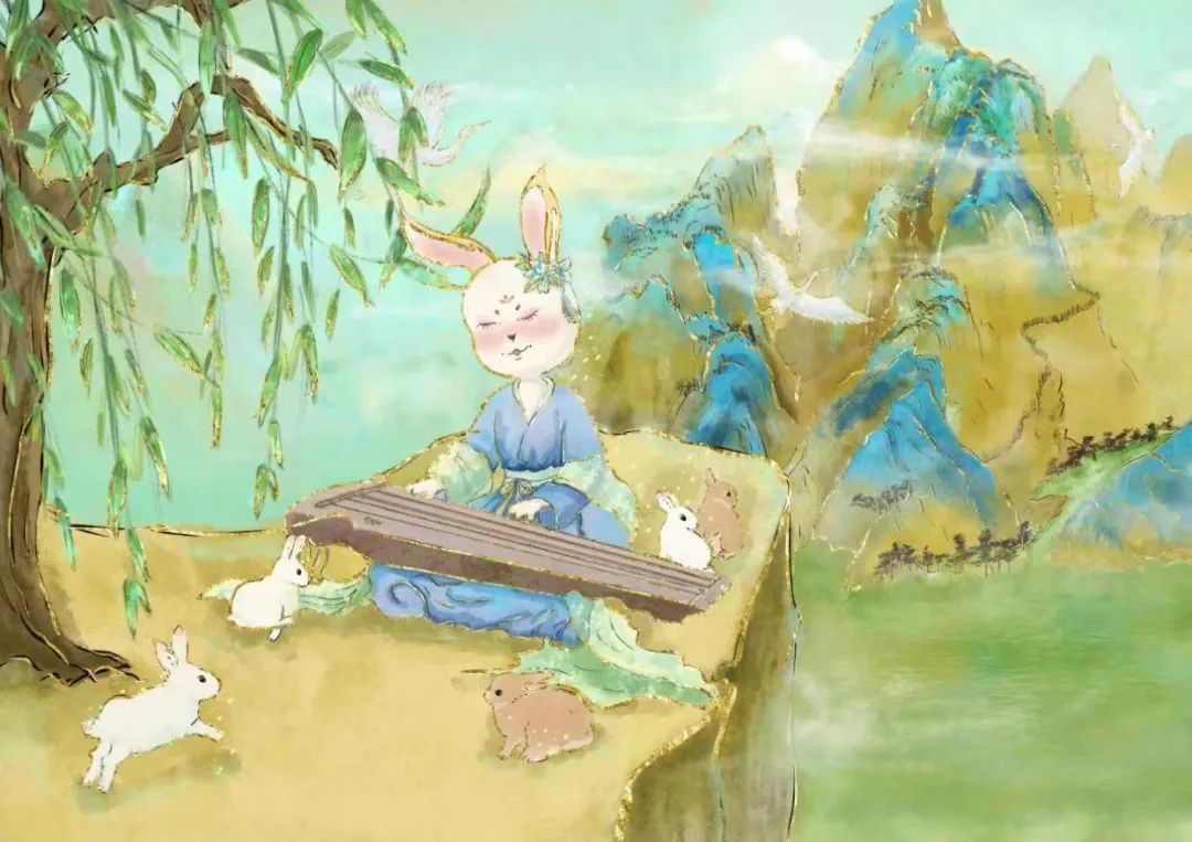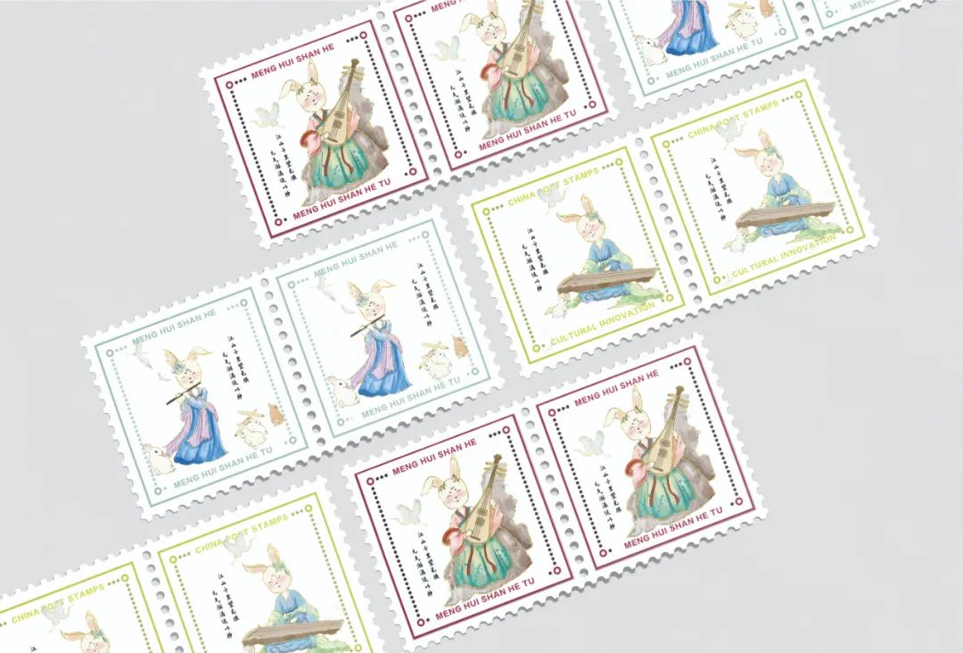 设计说明:《梦回山河》系列作品:魂牵梦萦、恍然入梦、酣然入梦。以三个情景:《千里江山图》恢宏,让“梦回兔”不由自主吹奏起笛子,如梦境般进入画卷中,感受到传统乐器的美韵与画卷的融合。由浅入深,从而身临其境画中,去感受梦寐以求的繁荣昌盛。该系列作品主要通过岩彩的绘画技法,以“梦回兔”的形象去体会《千里江山图》的魅力所在。