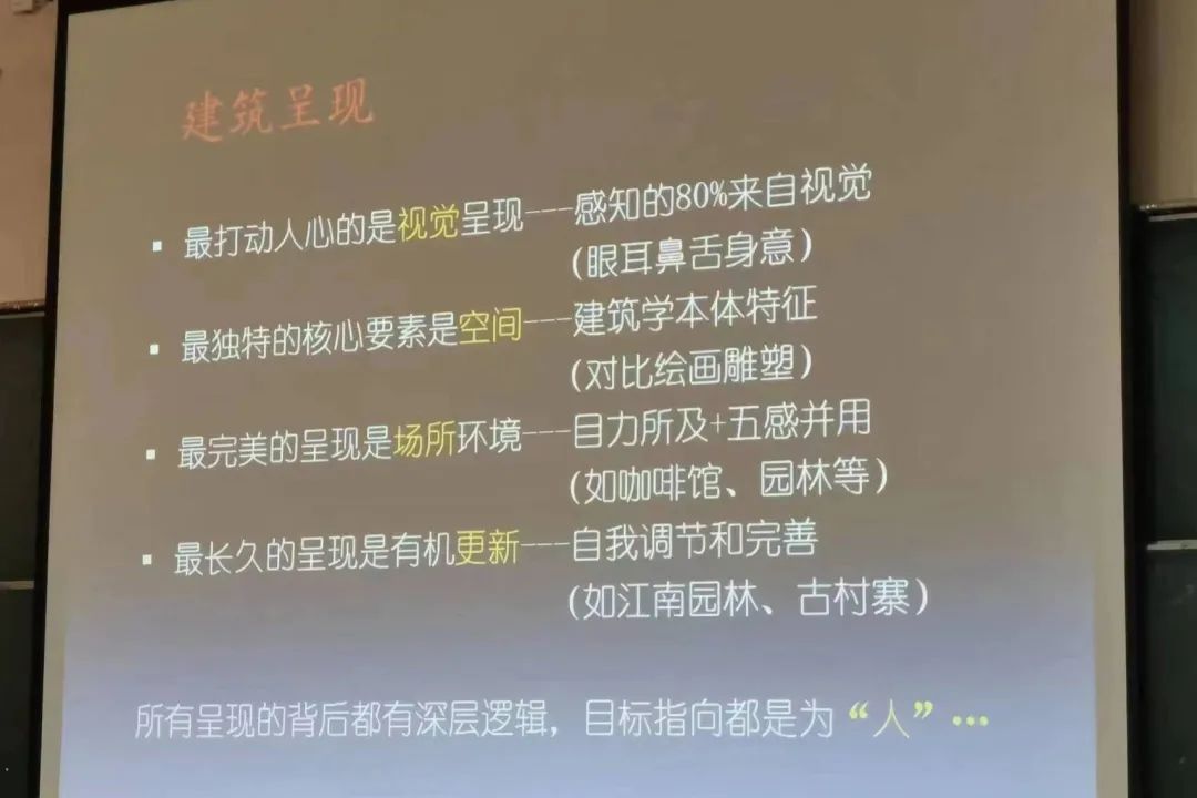 关于建筑设计的终极目标问题,王子岩教授则将其分解为“功能组织+场所精神”并从认知体验和场所信息两方面进行深度解读,揭示人的行为到空间建筑再到心理感应,某些行为活动与建筑空间存在一定对应的关系,空间环境也向人们做出某些暗示、引导。