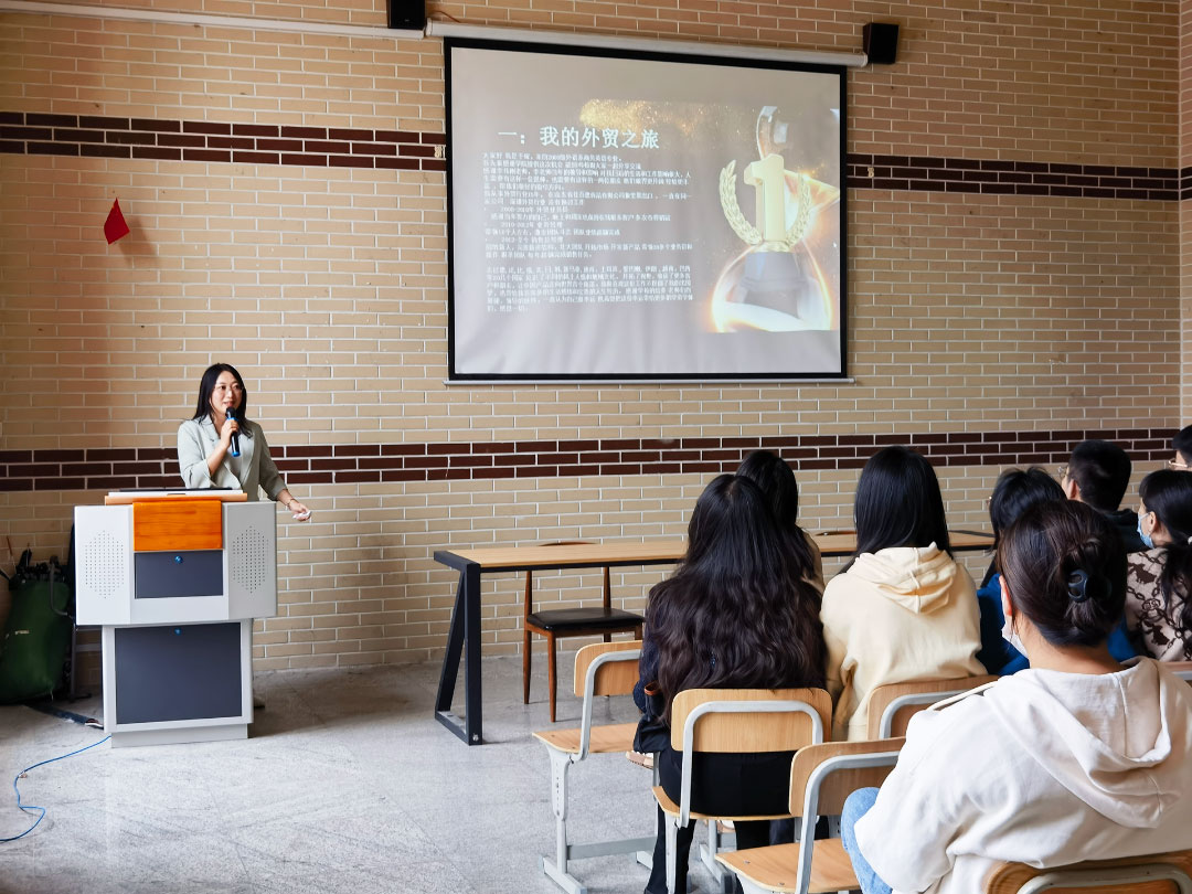 现任山东省佳百德食品有限公司销售总经理的2005级商务英语专业毕业生于琛,回校开展就业经验讲座,为毕业生工作做出贡献。