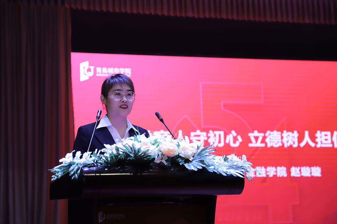 来自机电工程学院的青年学子初磊磊向大家分享了自己的“逆袭之路”。从只比录取分数线高一分的“擦线生”,到青年学子心中的“机电大神”,他在表彰大会的舞台向大家诠释着砥砺奋斗、永不放弃的青春模样!会计与金融学院辅导员赵璇璇,作为学生工作者代表,围绕《为党育人守初心·立德树人担使命》这一主题,与大家分享了如何为人才培养提供切实助力等感悟。