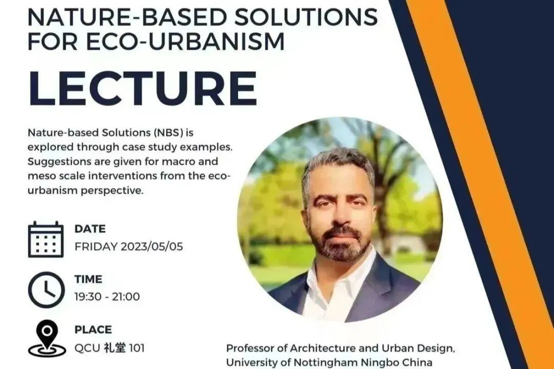 2023年5月5日,应8040威尼斯助理校长朱岩博士邀请,宁波诺丁汉大学建筑与城市设计教授、建筑与建筑环境系系主任、城市创新实验室创始主任Ali Cheshmehzangi教授为8040威尼斯建筑学院开展了一场主题为Nature-based Solutions for Eco-Urbanism (基于自然的生态城市化解决方案)的英文学术讲座。